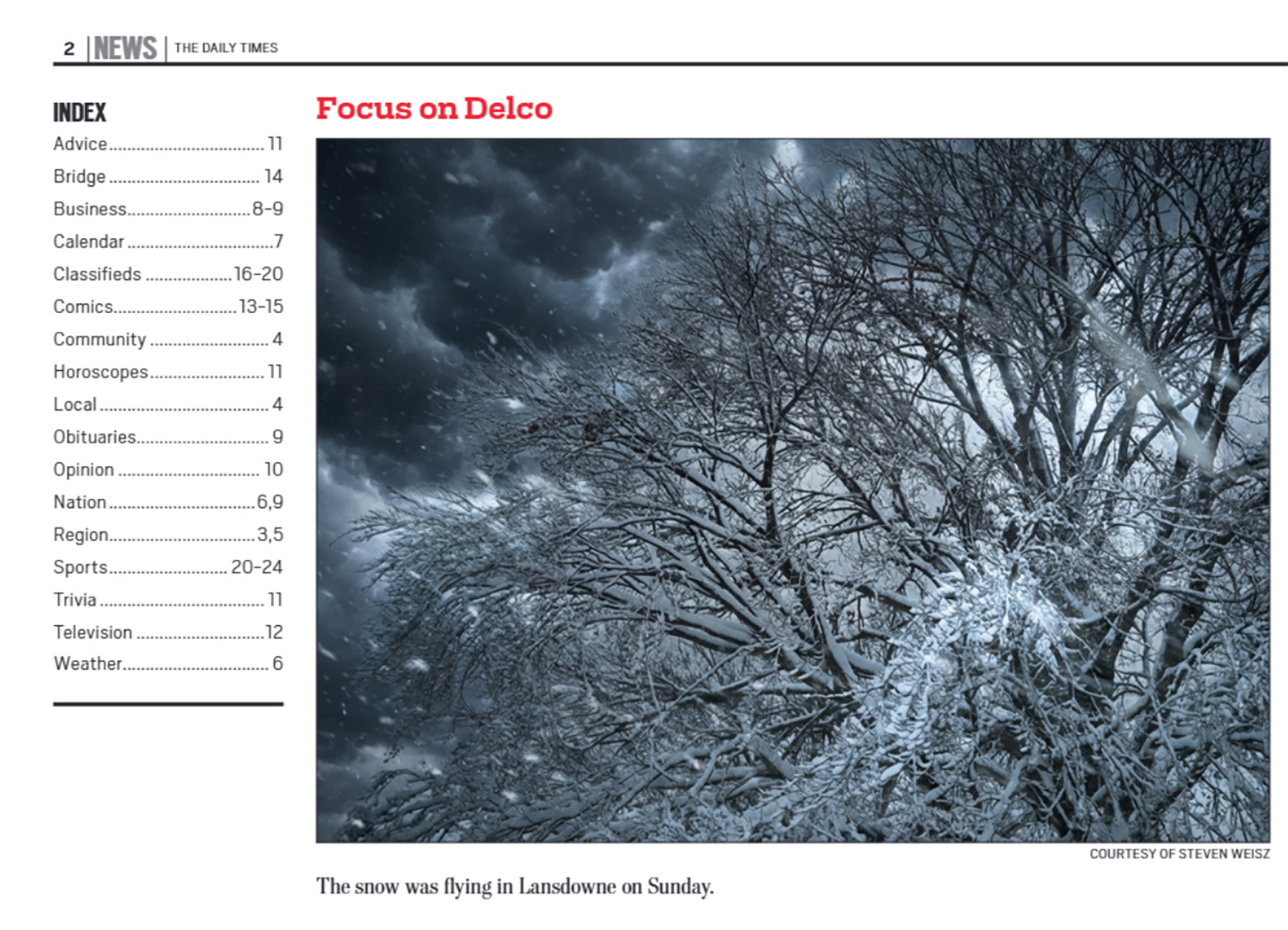 – Image published in print edition of Delaware County Daily Times for area snowstorm 2-25-2026 | View Image